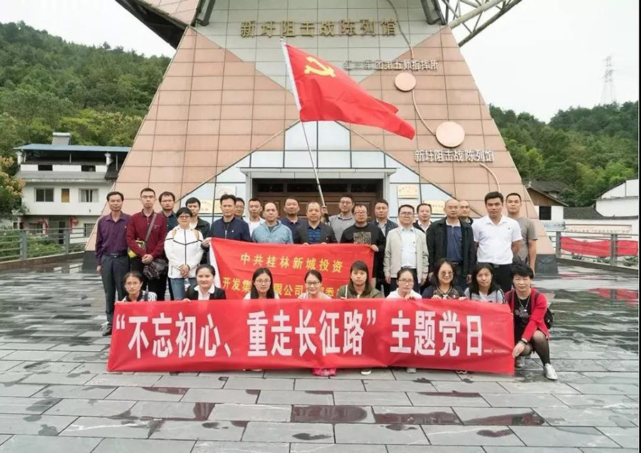 “青山肅立,綠水長歌,重走長征路,初心永不忘”,9月27日,桂林新城投資集團(tuán)黨支部組織全體黨員來到桂林市灌陽縣新圩阻擊戰(zhàn)陳列館和湘江戰(zhàn)役新圩阻擊戰(zhàn)酒海井紅軍紀(jì)念園,參加臨桂區(qū)直屬機(jī)關(guān)工委舉辦的“不忘初心、重走長征路”愛國主義教育第六期活動(dòng)。臨桂新區(qū)工委委員、管委會(huì)副主任覃正東以普通黨員的身份參加此次活動(dòng)。
