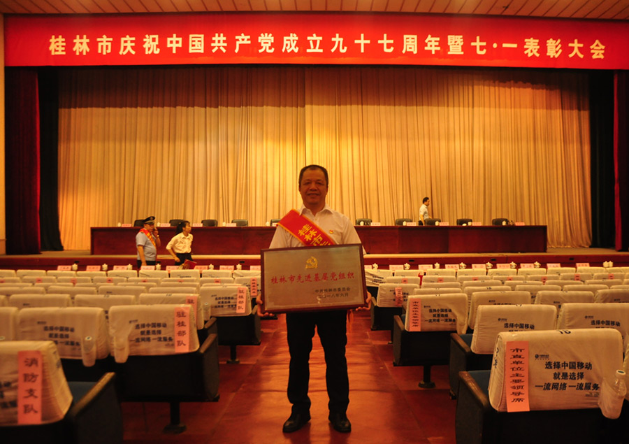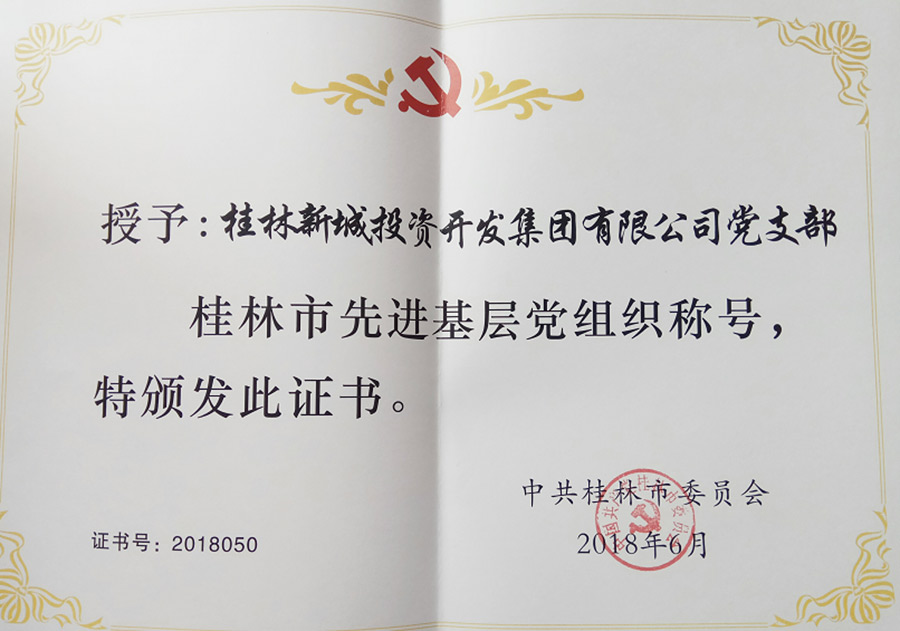 2018年6月29日上午,在桂林市直機關(guān)小禮堂舉行的桂林市慶祝中國共產(chǎn)黨成立九十七周年暨七·一表彰大會上,表揚了全市先進基層黨組織、優(yōu)秀共產(chǎn)黨員、優(yōu)秀黨務(wù)工作者,新城投資集團黨支部榮獲“桂林市先進基層黨組織”稱號,黨支部書記周道林代表新城投資集團黨支部參加了此次表彰大會。