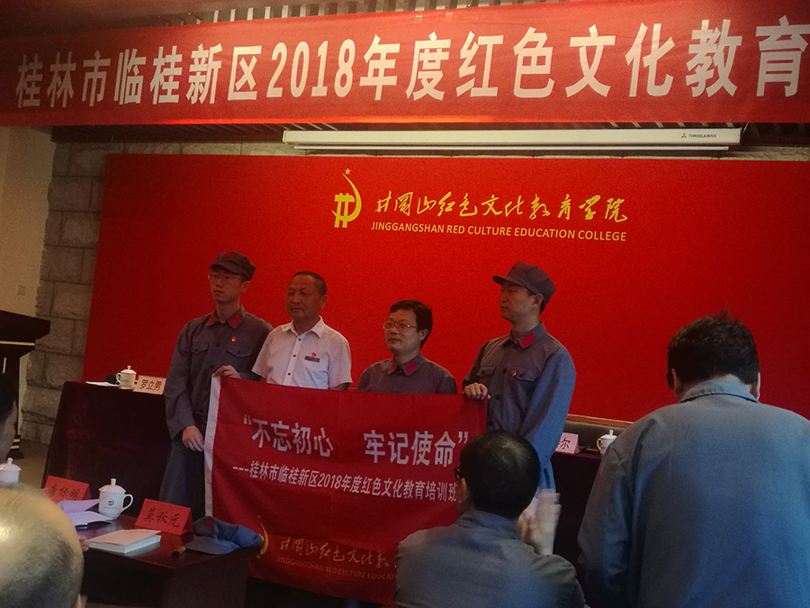 為認(rèn)真貫徹落實(shí)《干部教育培訓(xùn)工作條例》,抓好黨員干部隊(duì)伍建設(shè),培養(yǎng)和造就一支高素質(zhì)的黨員干部隊(duì)伍,進(jìn)一步強(qiáng)化臨桂新區(qū)黨員干部黨性思想、紅色文化思想教育,在中國(guó)共產(chǎn)黨成立97周年前夕,臨桂新區(qū)工委組織新區(qū)黨員干部、新城投資集團(tuán)黨員干部,于5月26日前往井岡山紅色文化教育學(xué)院,開(kāi)展為期5天的以“不忘初心,牢記使命”為主題的紅色文化教育培訓(xùn)。參加第一期教育培訓(xùn)的學(xué)員共計(jì)46人。臨桂新區(qū)工委副書(shū)記唐標(biāo)明、工委委員李星明、 工委委員蔣玖明、工委委員莫秋元、新區(qū)管委黨總支副書(shū)記李鋒、新城投資集團(tuán)黨支部副書(shū)記鄧仁友均以普通黨員身份參加第一期紅色文化教育培訓(xùn)。