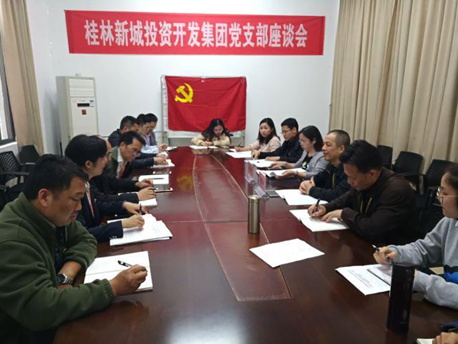 為深入貫徹落實(shí)全區(qū)、全市組織部長(zhǎng)會(huì)議精神,進(jìn)一步了解基層黨組織在黨建工作中取得的經(jīng)驗(yàn)和急待協(xié)調(diào)解決的問(wèn)題,2018年4月12日下午,臨桂區(qū)委組織部副部長(zhǎng)唐良紅一行專程到新城投資集團(tuán)召開(kāi)座談會(huì),集團(tuán)公司黨支部書記周道林、黨支部副書記鄧仁友、支部委員、黨小組長(zhǎng)、群團(tuán)負(fù)責(zé)人參加座談。