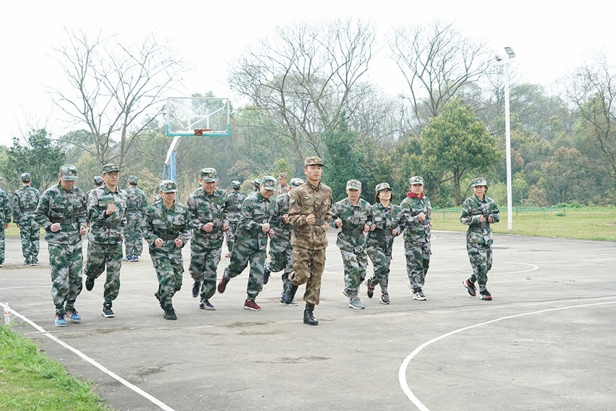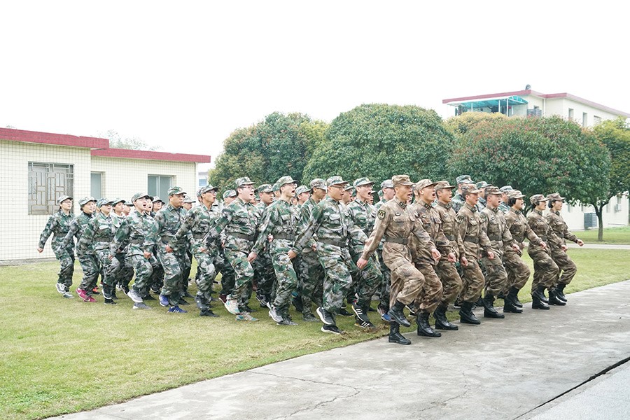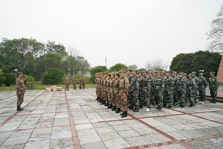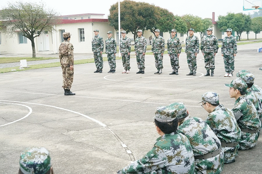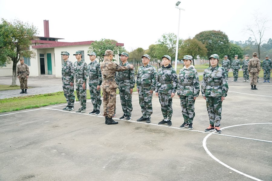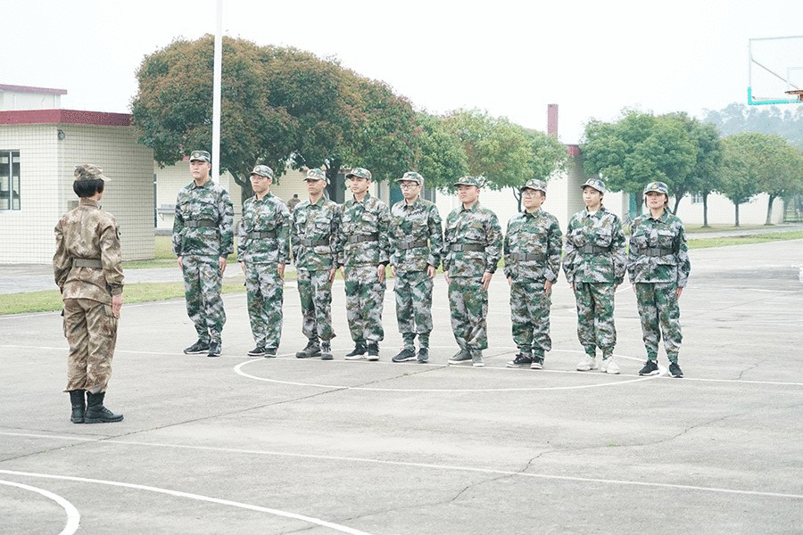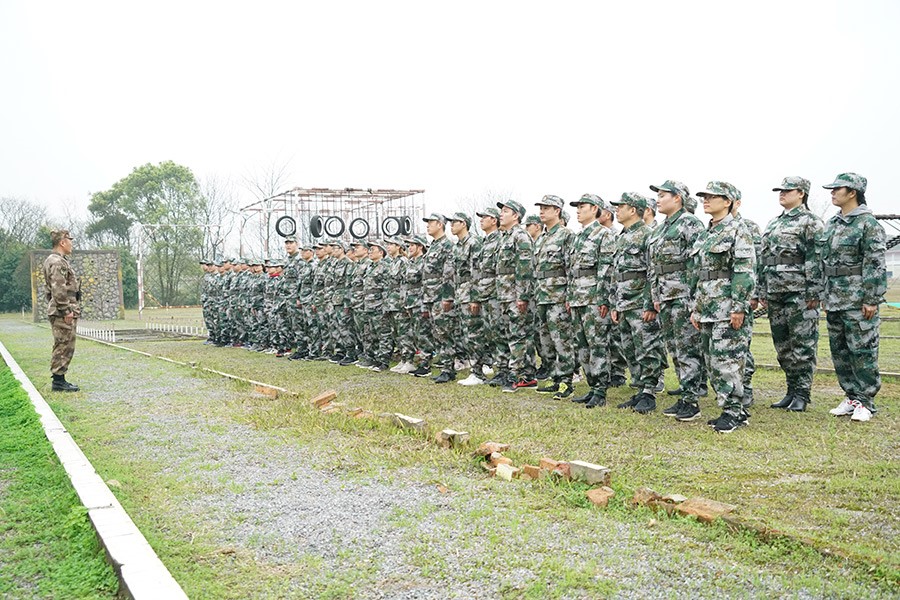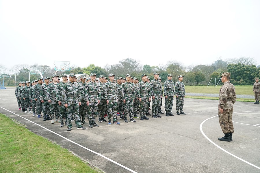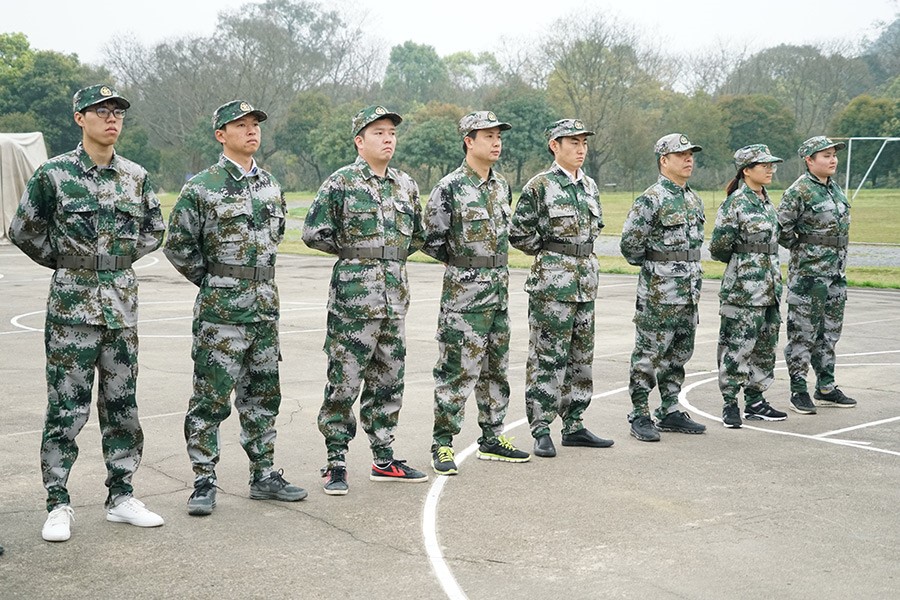 抵達訓(xùn)練場地后,全體人員換上迷彩服,拉開了一天封閉軍訓(xùn)的序幕。
