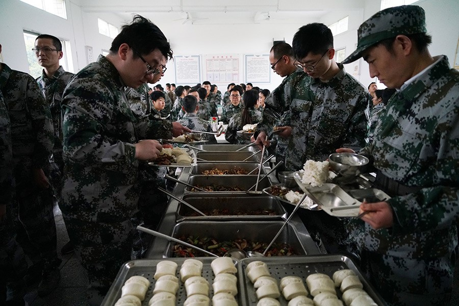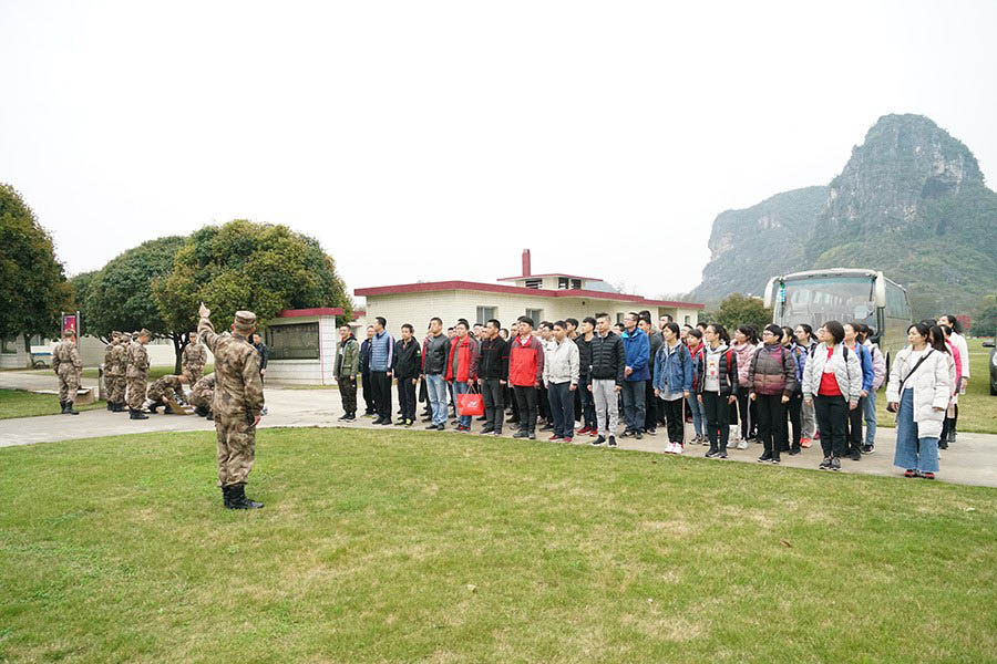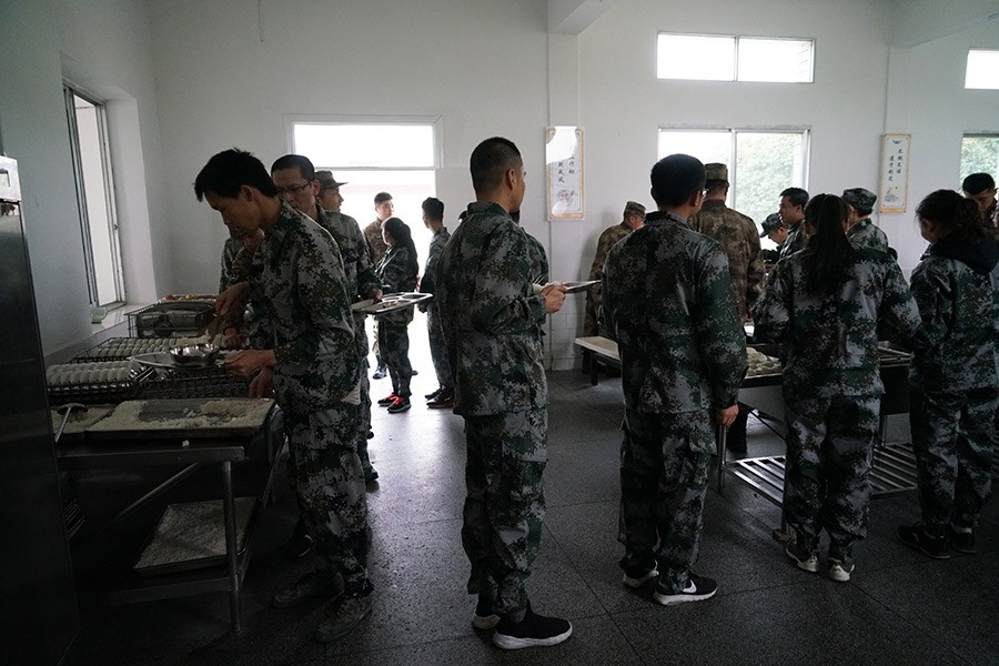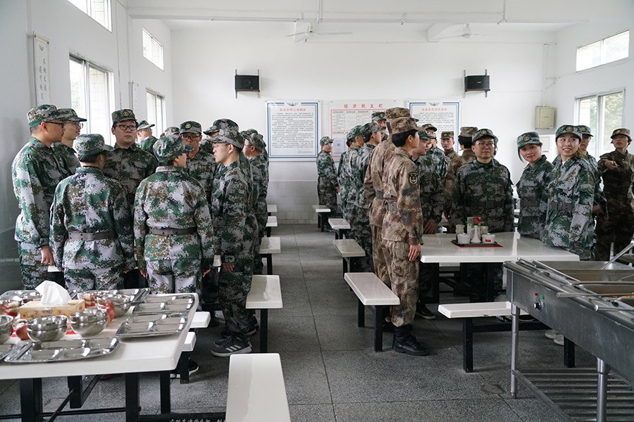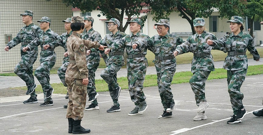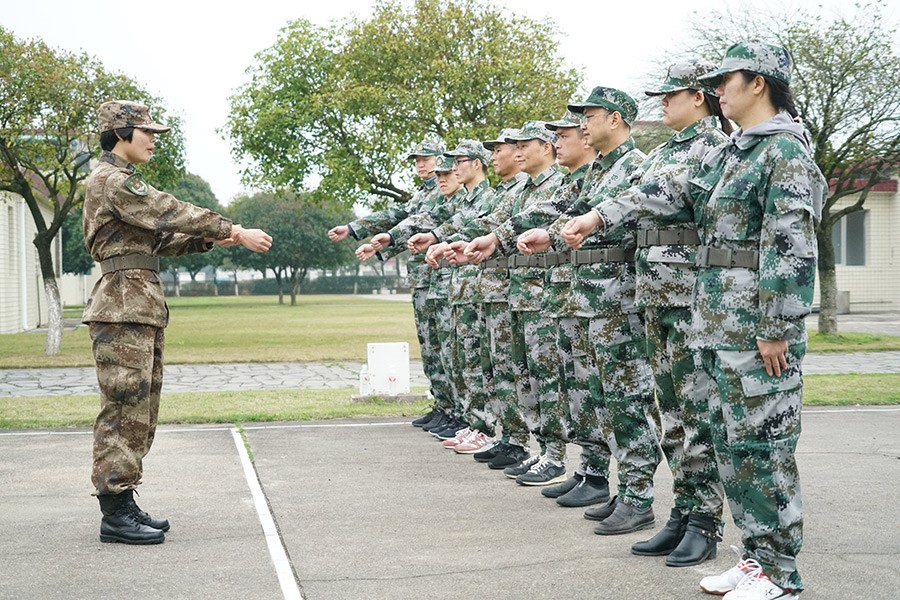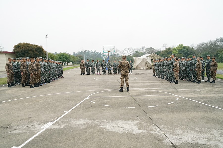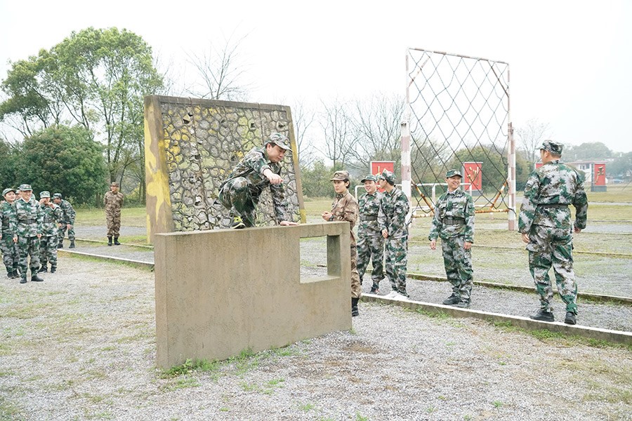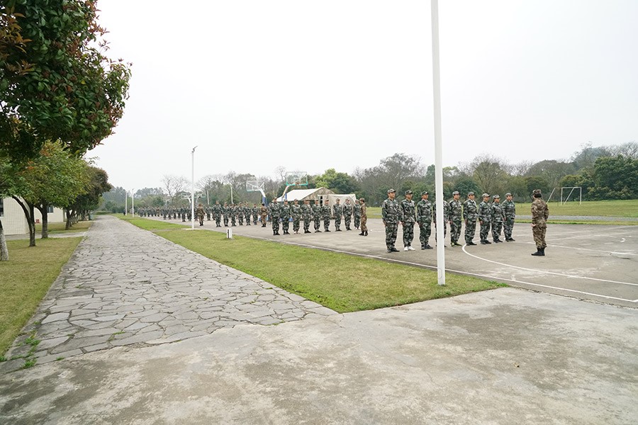 抵達訓(xùn)練場地后,全體人員換上迷彩服,拉開了一天封閉軍訓(xùn)的序幕。