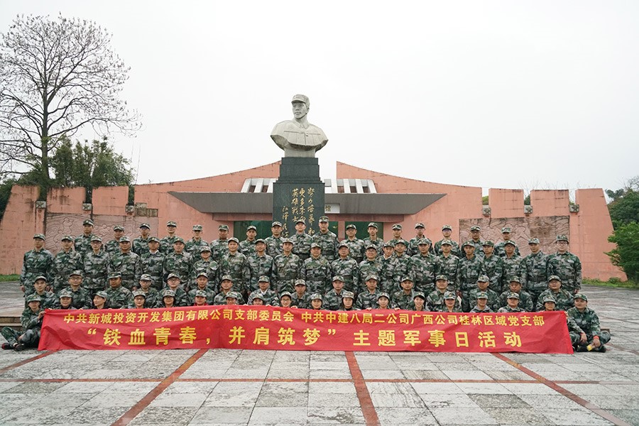 中共桂林新城投資開發(fā)集團有限公司支部委員會、中共中建八局二公司廣西公司桂林區(qū)域黨支部于2018年10月30日成立聯(lián)合黨支部后,提出通過“企企聯(lián)建,強強聯(lián)合,將黨小組建立到項目上”的方式,共同打造“黨旗映勝地”國企黨建品牌。通過共建活動平臺,分享工作資源、交流工作經(jīng)驗、解決實際問題等途徑,實現(xiàn)黨的建設(shè)良性互動。3月16日,聯(lián)合黨支部組織黨員干部80余人開展了“鐵血青春,并肩筑夢”主題軍事日聯(lián)建活動,以準(zhǔn)軍事化訓(xùn)練的形式強化基層黨組織建設(shè)。