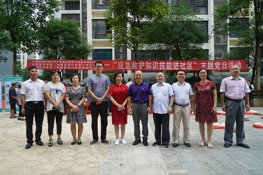 為充分發(fā)揮黨員志愿者的先鋒模范帶頭作用,增強(qiáng)轄區(qū)居民對(duì)健康的關(guān)注,加強(qiáng)對(duì)夏季防病的健康意識(shí),6月29日(周六)上午,新城投資集團(tuán)黨支部和桂林醫(yī)學(xué)院第二附屬醫(yī)院行政第三、第四黨支部在桂林市臨桂區(qū)新城國(guó)奧小區(qū)舉行“應(yīng)急救護(hù)及健康知識(shí)進(jìn)社區(qū)”主題黨日活動(dòng)。