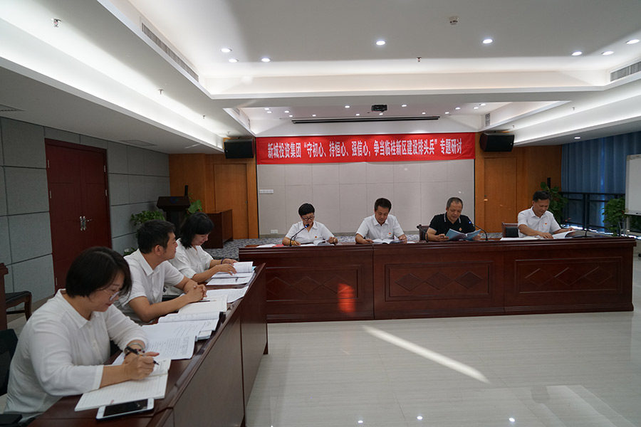 當(dāng)天下午,新城投資集團(tuán)黨員領(lǐng)導(dǎo)班子開展了“守初心、持恒心、強(qiáng)信心,爭(zhēng)當(dāng)臨桂新區(qū)建設(shè)排頭兵”專題研討。