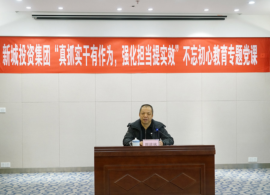 10月28日,新城投資集團(tuán)組織開展“真抓實(shí)干有作為,強(qiáng)化擔(dān)當(dāng)提實(shí)效”主題教育專題黨課。集團(tuán)“不忘初心、牢記使命”主題教育領(lǐng)導(dǎo)小組組長、董事長周道林結(jié)合主題教育學(xué)習(xí)成效和調(diào)研成果,講授了題為《真抓實(shí)干有作為,強(qiáng)化擔(dān)當(dāng)提實(shí)效》的主題教育專題黨課。主題教育領(lǐng)導(dǎo)小組全體成員、全體黨員、積極分子、主管及主管以上管理人員參加學(xué)習(xí)。