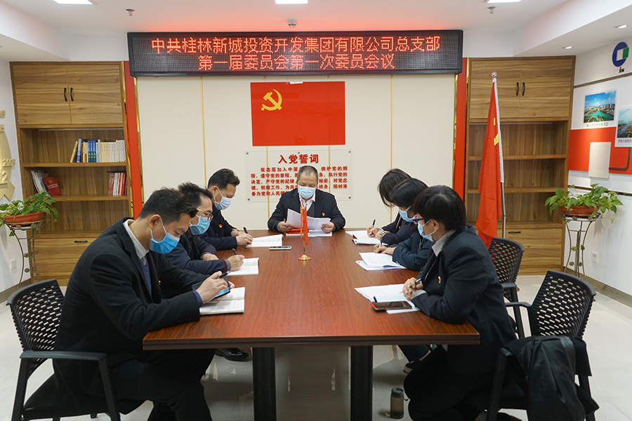 中共桂林新城投資開(kāi)發(fā)集團(tuán)有限公司總支部第一屆委員會(huì)第一次全體委員會(huì)議現(xiàn)場(chǎng)
