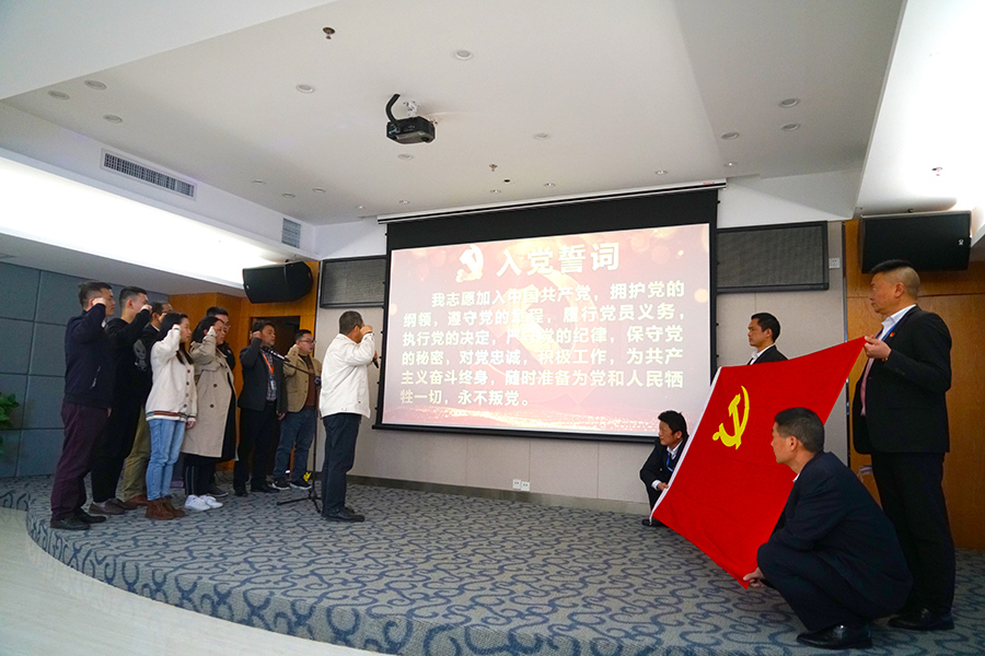 “我志愿加入中國共產(chǎn)黨,擁護黨的綱領(lǐng),遵守黨的章程,履行黨員義務(wù),執(zhí)行黨的決定,嚴(yán)守黨的紀(jì)律,保守黨的秘密,對黨忠誠,積極工作……”2020年4月14日上午,新城投資集團十樓會議室,鄭善華、蔣生成、吳萍明、韋堅、翁明浩、袁靜、秦輝、楊芹、顧夢潔、譚陽林等10位預(yù)備黨員在鮮紅的黨旗前莊嚴(yán)宣誓:“為共產(chǎn)主義奮斗終身,隨時準(zhǔn)備為黨和人民犧牲一切,永不叛黨?!毙鲁峭顿Y集團黨總支書記周道林組織全體黨員參與宣誓儀式。