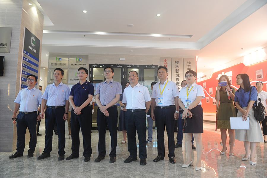 臨桂新區(qū)工委委員、管委會副主任文杰,市國資委黨委委員、組織部部長趙慶華,新區(qū)工委組織人事部部長梁利,集團(tuán)黨總支委員陪同參觀。