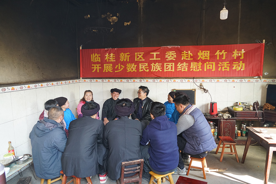 2020年12月25日,市紀(jì)委監(jiān)委駐桂林市臨桂新區(qū)管理委員會紀(jì)檢監(jiān)察組副組長唐良平,臨桂新區(qū)管委會機關(guān)黨委委員、工委組織人事部部長梁利,桂林新城投資集團黨總支委員、副總經(jīng)理張新悅等一行組成慰問組,赴資源縣兩水苗族鄉(xiāng)煙竹村慰問村兩委干部、駐村第一書記和駐村隊員,與苗族村民開展民族團結(jié)座談活動。