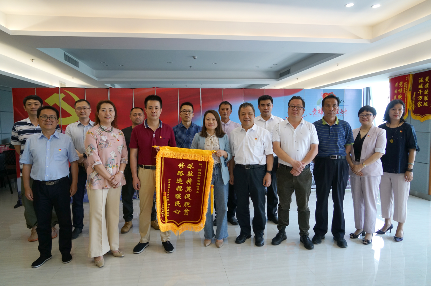 5月11日,資源縣兩水苗族鄉(xiāng)副鄉(xiāng)長曾祥超,煙竹村黨總支書記、村委主任龍小玉等一行將“修路造福暖民心,派駐精英促脫貧”的錦旗送到桂林新城投資集團(tuán)辦公大樓,對駐村隊(duì)員及后盾單位兩年來對煙竹村的幫扶工作表示感謝。臨桂新區(qū)工委委員、管委會副主任、新區(qū)機(jī)關(guān)黨委副書記文杰,新區(qū)工委組織人事部部長梁利,新城投資集團(tuán)黨總支書記、董事長、總經(jīng)理周道林出席贈錦旗活動。