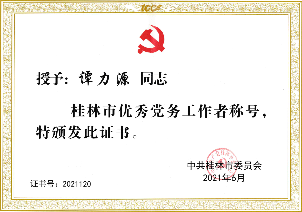 在慶祝中國共產黨成立100周年之際,為弘揚正氣、樹立標桿,激勵各級黨組織和廣大共產黨員堅守初心、勇?lián)姑^發(fā)有為,市委決定對150名共產黨員、120名黨務工作者、150個先進基層黨組織予以表彰,分別授予“桂林市優(yōu)秀共產黨員”、“桂林市優(yōu)秀黨務工作者”、“桂林市先進基層黨組織”稱號。