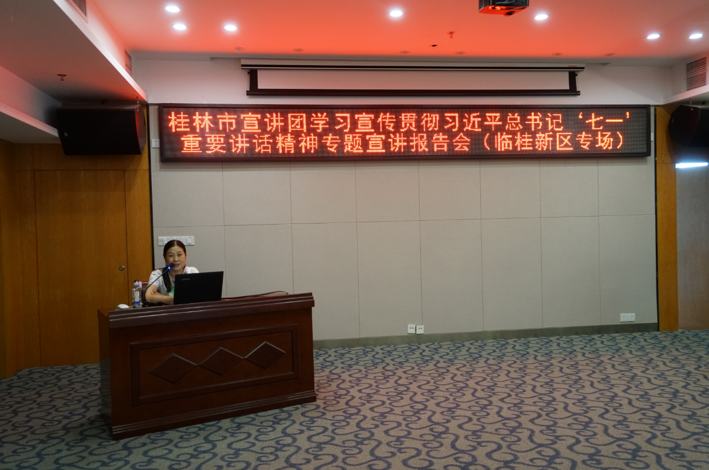 9月9日上午,新城投資集團黨總支組織全體黨員參加由桂林新區(qū)舉辦的習(xí)近平總書記“七一”重要講話精神進行專題宣講報告會。