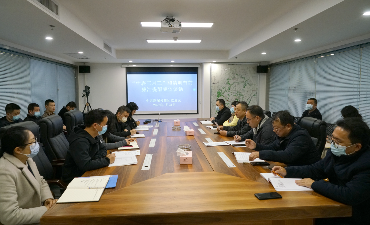 為深入貫徹落實中央、自治區(qū)持之以恒糾“四風(fēng)”樹新風(fēng)部署要求,嚴(yán)防“四風(fēng)”問題反彈回潮,推動移風(fēng)易俗, 2022年3月31日,新城投集團召開“壯族三月三”和清明節(jié)前廉潔提醒集體談話會。集團黨總支書記、董事長周道林主持會議,并就落實上級要求對集團領(lǐng)導(dǎo)班子成員、各部室子公司負(fù)責(zé)人進(jìn)行廉政提醒。