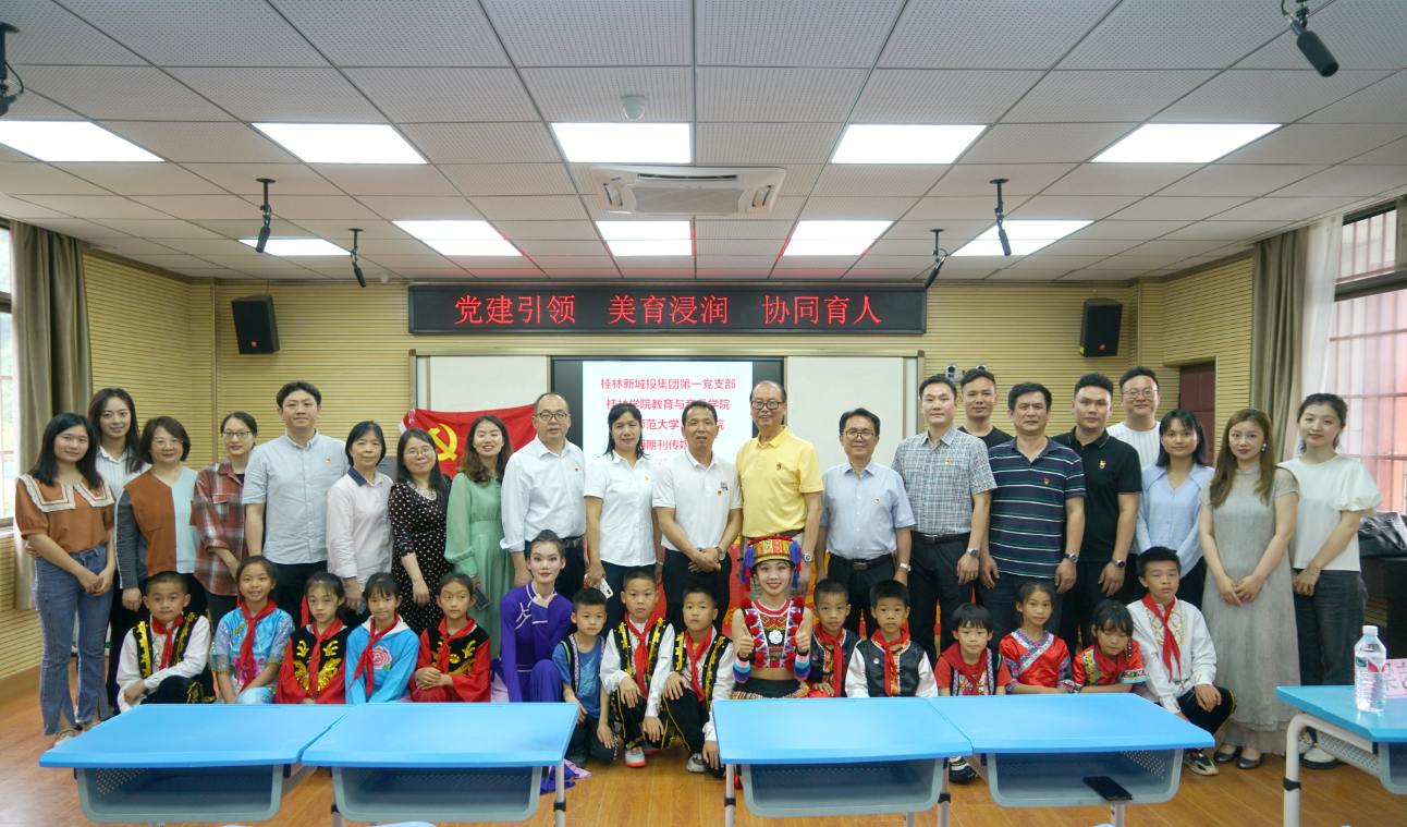 桂林市雁山區(qū)教育局業(yè)務(wù)部主任明耀勤,新城投集團(tuán)黨總支委員、工會主席譚力源,第一支部書記薛春秀,桂林學(xué)院教育與音樂學(xué)院院長彭超,黨總支書記周杰,草坪回族希望小學(xué)校長唐桂輝,新城投集團(tuán)第一支部委員,桂林學(xué)院教育與音樂學(xué)院老師等一行參加活動。