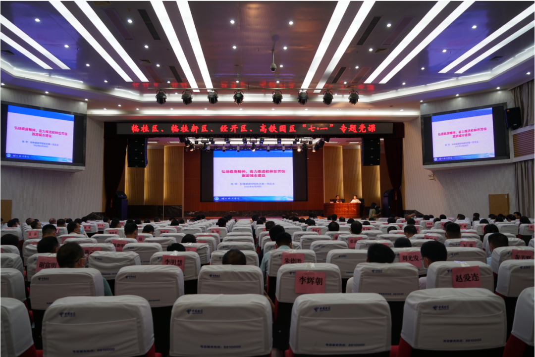 為慶?!捌咭弧苯h節(jié),喜迎黨的二十大勝利召開,扎實(shí)推進(jìn)黨史教育常態(tài)化長效化開展,增強(qiáng)黨員領(lǐng)導(dǎo)干部使命感和責(zé)任感,加快推進(jìn)桂林產(chǎn)業(yè)振興,為打造世界級旅游城市提供堅強(qiáng)的思想和組織保障,2022年6月28日上午,桂林市紀(jì)委駐臨桂新區(qū)管委會紀(jì)檢監(jiān)察組在臨桂區(qū)委黨校一樓報告廳組織召開“弘揚(yáng)嘉庚精神,著力推進(jìn)桂林世界旅游城市建設(shè)”專題黨課。黨課由桂林市紀(jì)委駐臨桂新區(qū)管委會紀(jì)檢監(jiān)察組組長、臨桂新區(qū)黨工委委員石安蘭主持。