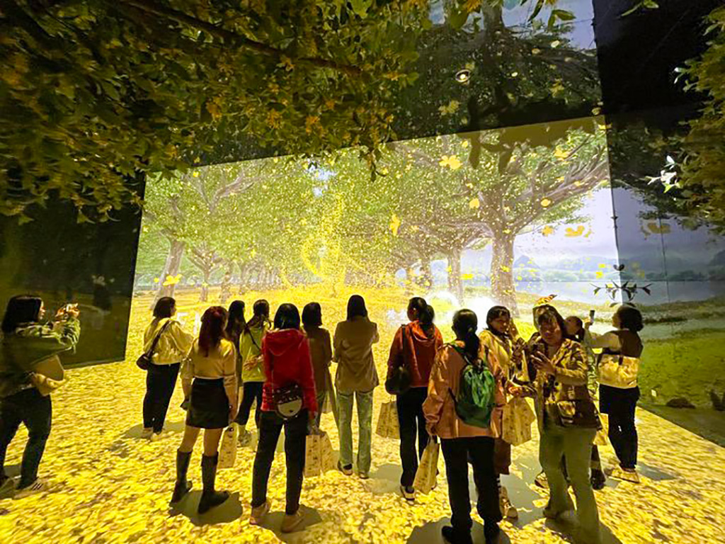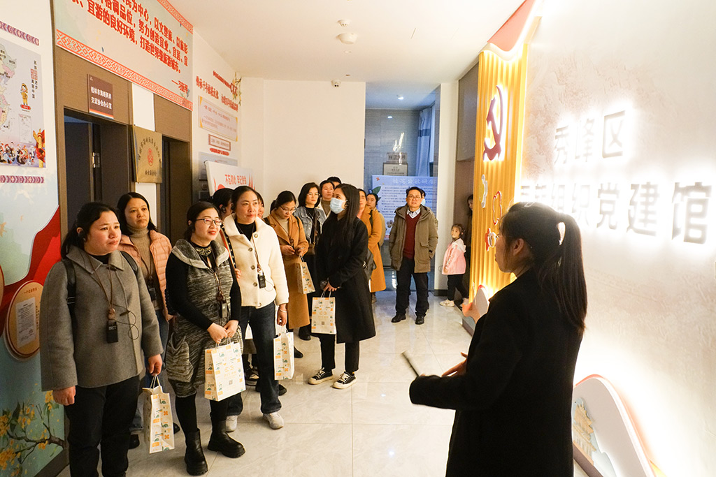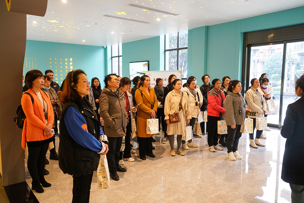 第二項(xiàng)活動(dòng)是參觀桂花文化體驗(yàn)館,在兩新組織黨建館,大家重溫了百年大黨從成立之初到新時(shí)代的光輝歷程,一幅幅舊照片展示了一段段珍貴的歷史,一行行舊文字記載了激情燃燒的歲月。參觀過(guò)后女職工們深受激勵(lì)和鼓舞,表示要充分發(fā)揮自身積極熱情、耐心細(xì)致、善于做群眾工作的優(yōu)勢(shì)和特點(diǎn),在各自崗位作出新的成績(jī)。在桂花文化主題館,女職工們?cè)谥v解員的帶領(lǐng)下,深入了解了桂林與桂花的深厚淵源,以及獨(dú)特文化魅力,近距離體驗(yàn)桂花的香味與傳奇。通過(guò)觀看沉浸式桂花動(dòng)畫,引得大家傳來(lái)陣陣的驚嘆聲、歡呼聲,那是能夠感同身受的桂花雨落和沁人心脾。桂花蜜、桂花酒、桂花潤(rùn)膚乳等一系列衍生產(chǎn)品展現(xiàn),讓大家增進(jìn)了對(duì)桂花及桂林傳統(tǒng)民族文化的了解和興趣,增強(qiáng)了地域民族文化認(rèn)同感。