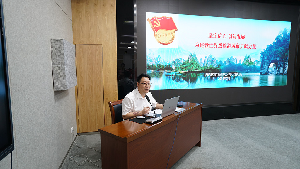 在活動(dòng)中,左旭陽還給大家上了一堂有思想、有深度、有意義的黨課。黨課以《堅(jiān)定信心 創(chuàng)新發(fā)展 為建設(shè)世界級(jí)旅游城市貢獻(xiàn)力量》為題,從多個(gè)方面進(jìn)行了深入的講解和闡述。他重點(diǎn)解讀了《中國共產(chǎn)黨紀(jì)律處分條例》,強(qiáng)調(diào)了黨風(fēng)黨紀(jì)建設(shè)的重要性和必要性;講解了《關(guān)于支持廣西加快打造國內(nèi)國際雙循環(huán)市場(chǎng)經(jīng)營便利地的若干措施》,探尋了發(fā)展的契機(jī);分享了工作中的創(chuàng)新及成果感悟,提升了黨員干部干事創(chuàng)業(yè)的“精氣神”;把脈新城投集團(tuán)的發(fā)展方向,增強(qiáng)了大家大有可為、時(shí)不我待的信心。