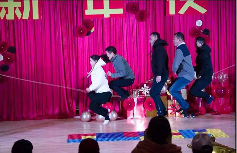 指壓板上跳繩:為了團隊榮譽跳個指壓板算什么,有本事上刀子啊。(好的,明年考慮一下)