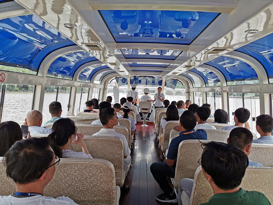 集團(tuán)公司組織新員工來到水一坊碼頭,乘船游覽了新區(qū)水系,參觀了新區(qū)規(guī)劃館、新城國奧花園和市紀(jì)檢監(jiān)察綜合業(yè)務(wù)基地等重點項目,幫助新員工切身實地體會集團(tuán)公司總體規(guī)劃、項目成果和一線建設(shè)熱潮。