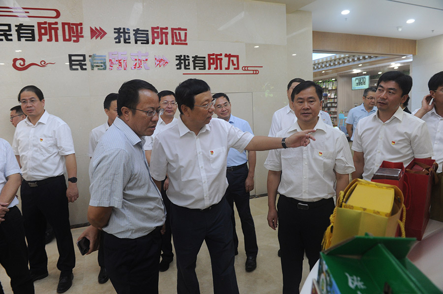 揭牌儀式結(jié)束后,趙樂(lè)秦、秦春成、粟增林、潘永建等市領(lǐng)導(dǎo)步入黨群服務(wù)中心參觀。在黨史黨建工作展示、人才家園、第一書(shū)記推薦產(chǎn)品等區(qū)域,趙樂(lè)秦對(duì)上述區(qū)域及充分發(fā)揮服務(wù)職能提出寶貴意見(jiàn)。