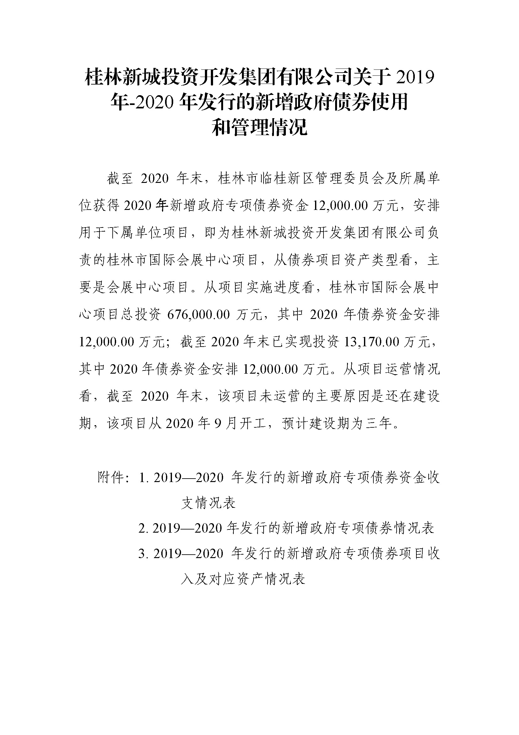 桂林市本級2019年--2020年末發(fā)行的新增地方政府專項債券情況表(臨桂新區(qū))