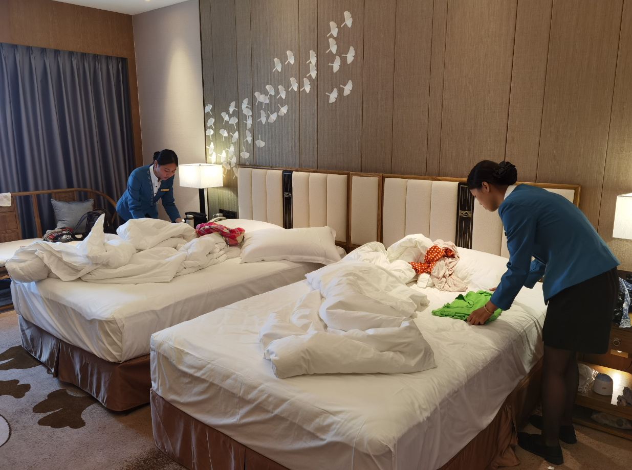 安全無小事。后勤保障部接到會(huì)議通知,提前開展消防安全演習(xí)、安全檢查、防疫控疫演習(xí)和全員疫情培訓(xùn),力求安保工作百密無一疏。餐飲部根據(jù)會(huì)務(wù)組提供賓客要求,精心準(zhǔn)備菜單,并嚴(yán)格把控食品質(zhì)量安全;房務(wù)部認(rèn)真梳理、精心準(zhǔn)備,結(jié)合各國風(fēng)情特色,特別設(shè)計(jì)和布置客房;后勤保障部關(guān)注細(xì)節(jié),全程跟進(jìn)服務(wù),設(shè)備間24小時(shí)派人值守,確保接待期間正常運(yùn)轉(zhuǎn),重點(diǎn)加強(qiáng)巡檢力度,嚴(yán)格控制場內(nèi)場外安全管理,竭力配合做好安全保障工作;宴會(huì)部根據(jù)會(huì)場需求,隨時(shí)調(diào)整會(huì)場布置,用周密服務(wù)確保論壇及晚宴順利進(jìn)行;市場部全程服務(wù)問題一對(duì)一開展對(duì)接跟進(jìn),確保每位遠(yuǎn)到而來的客人都能在宏謀大酒店享受賓至如歸的體驗(yàn)。