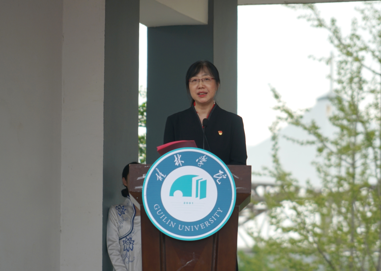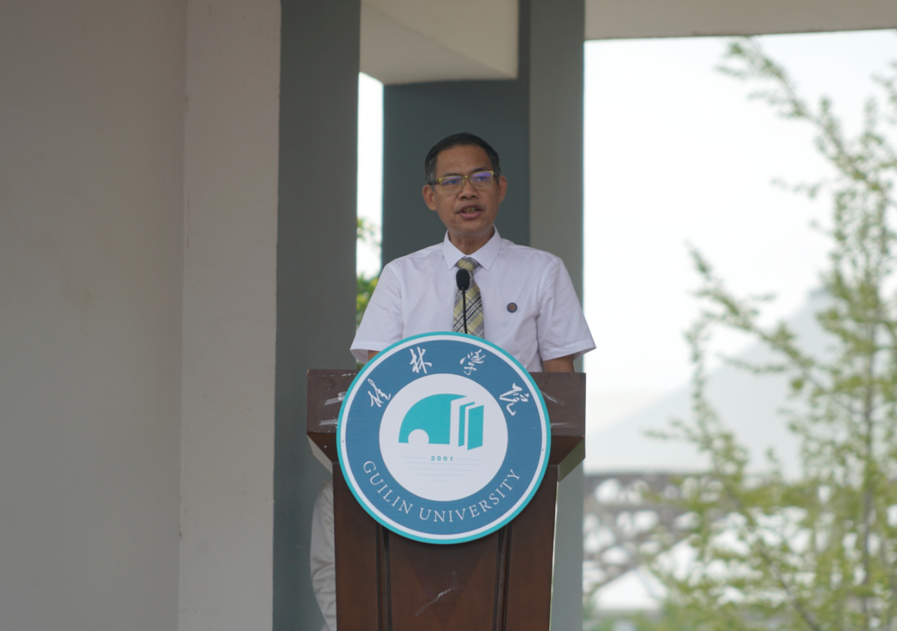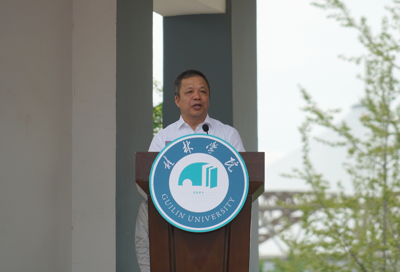 周道林表示,作為桂林學(xué)院的首屆新生,大家是學(xué)校新發(fā)展的見證者和參與者。為了給大家創(chuàng)造更好的學(xué)習(xí)環(huán)境,提供更好的發(fā)展平臺,學(xué)校將認真貫徹落實教育部致自治區(qū)人民政府《關(guān)于同意廣西師范大學(xué)漓江學(xué)院轉(zhuǎn)設(shè)為桂林學(xué)院的函》等文件精神,加大辦學(xué)投入,進一步完善辦學(xué)條件,按照“做強新文科、壯大新工科、拓展新農(nóng)科和新醫(yī)科”的基本思路,實施“強基礎(chǔ)補短板、重內(nèi)涵提質(zhì)量、育特色樹品牌”戰(zhàn)略,堅定“規(guī)范高效、特色鮮明、質(zhì)量與就業(yè)雙優(yōu)的國有民辦城市大學(xué)”發(fā)展目標,全面深化教育教學(xué)改革,不斷調(diào)整優(yōu)化學(xué)科專業(yè)結(jié)構(gòu),完善現(xiàn)代大學(xué)內(nèi)部治理體系,提高適應(yīng)區(qū)域經(jīng)濟社會發(fā)展所需要的應(yīng)用型、技術(shù)技能型人才培養(yǎng)質(zhì)量,加快建成桂林人民滿意的創(chuàng)新大學(xué)、開放大學(xué)、窗口大學(xué)。今年4月,習(xí)近平總書記在桂林考察調(diào)研時,給桂林設(shè)定了打造世界級旅游城市的歷史使命。站在新的歷史起點上,希望大家要始終牢記總書記的囑托,主動將自己的學(xué)習(xí)成長、個人發(fā)展與國家的發(fā)展需求緊密結(jié)合,為國家發(fā)展貢獻自己最大的力量。更多的關(guān)注桂林市的發(fā)展,用自己的所學(xué)所長來為桂林市的建設(shè)添磚加瓦。