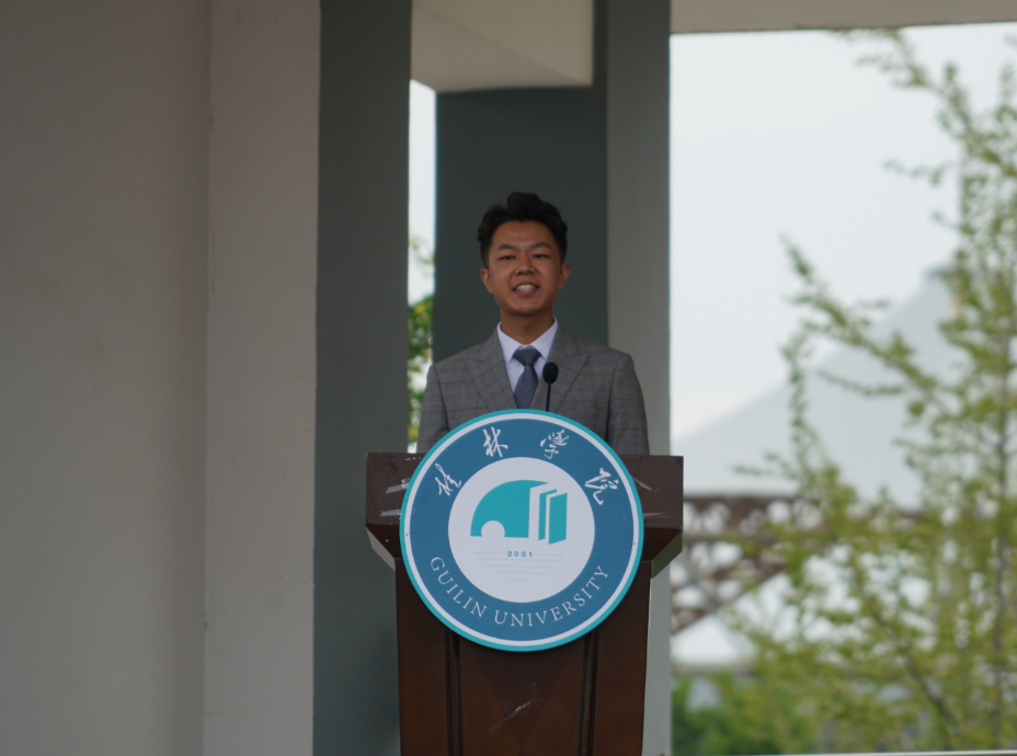 “云中的神啊,霧中的仙,神姿仙態(tài)桂林的山!情一樣深啊,夢一樣美,如情似夢漓江的水!水幾重啊,山幾重?水繞山環(huán)桂林城……”,周道林以中國當代詩人賀敬之的《桂林山水歌》為開場白,向從五湖四海來到桂林學(xué)院的莘莘學(xué)子們表達最誠摯的問候與歡迎。