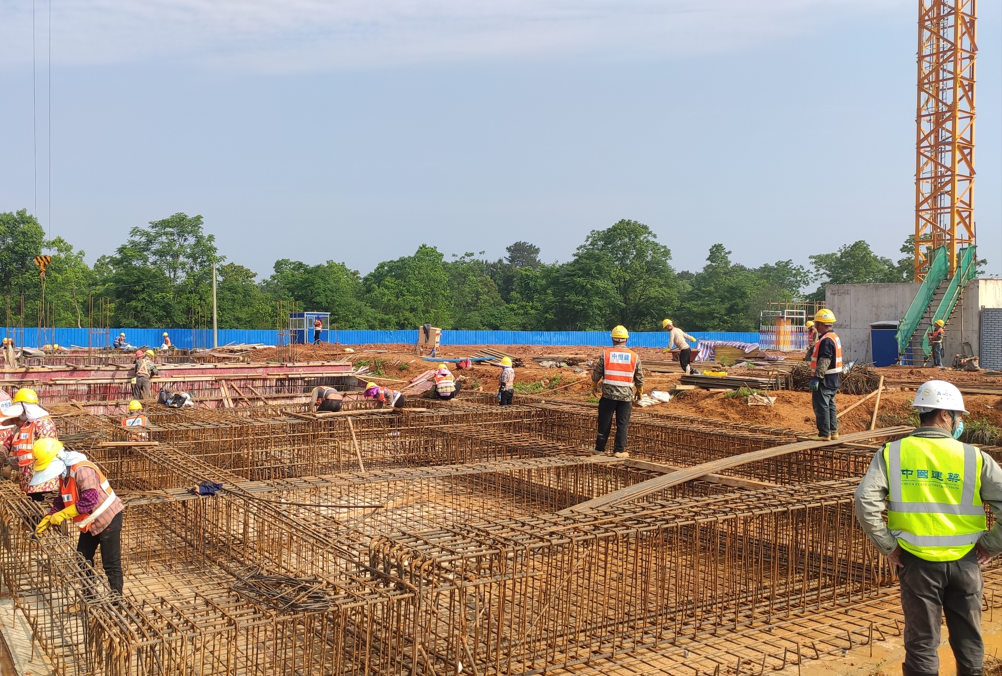 桂林學(xué)院7棟學(xué)生宿舍項目時間緊任務(wù)重,項目要在開學(xué)前交付使用,建設(shè)期間又逢“桂林的端午雨季”,為更好地發(fā)揮黨組織在項目上的促進(jìn)作用,集團(tuán)黨總支與項目參建單位共同組建了臨時聯(lián)合黨支部,以黨建為引領(lǐng),做到“項目建在哪里,黨旗就飄揚在哪里,黨組織戰(zhàn)斗堡壘作用就發(fā)揮到哪里”,黨支部戰(zhàn)斗堡壘和黨員先鋒模范作用得到充分發(fā)揮。2022年4月項目全方位施工,“5.1”假期現(xiàn)場作業(yè)“不打烊”,現(xiàn)場施工人員每日兩班日夜兼程施工,工程全面推進(jìn),確保按時按質(zhì)按量完成各施工節(jié)點建設(shè)任務(wù)。目前,基礎(chǔ)工程已完成80%,基礎(chǔ)土方回填工程量大,受雨季天氣影響較大,事關(guān)上部結(jié)構(gòu)施工節(jié)點,項目團(tuán)隊緊跟基礎(chǔ)工程的腳步開始土方回填工作,嚴(yán)保工期。