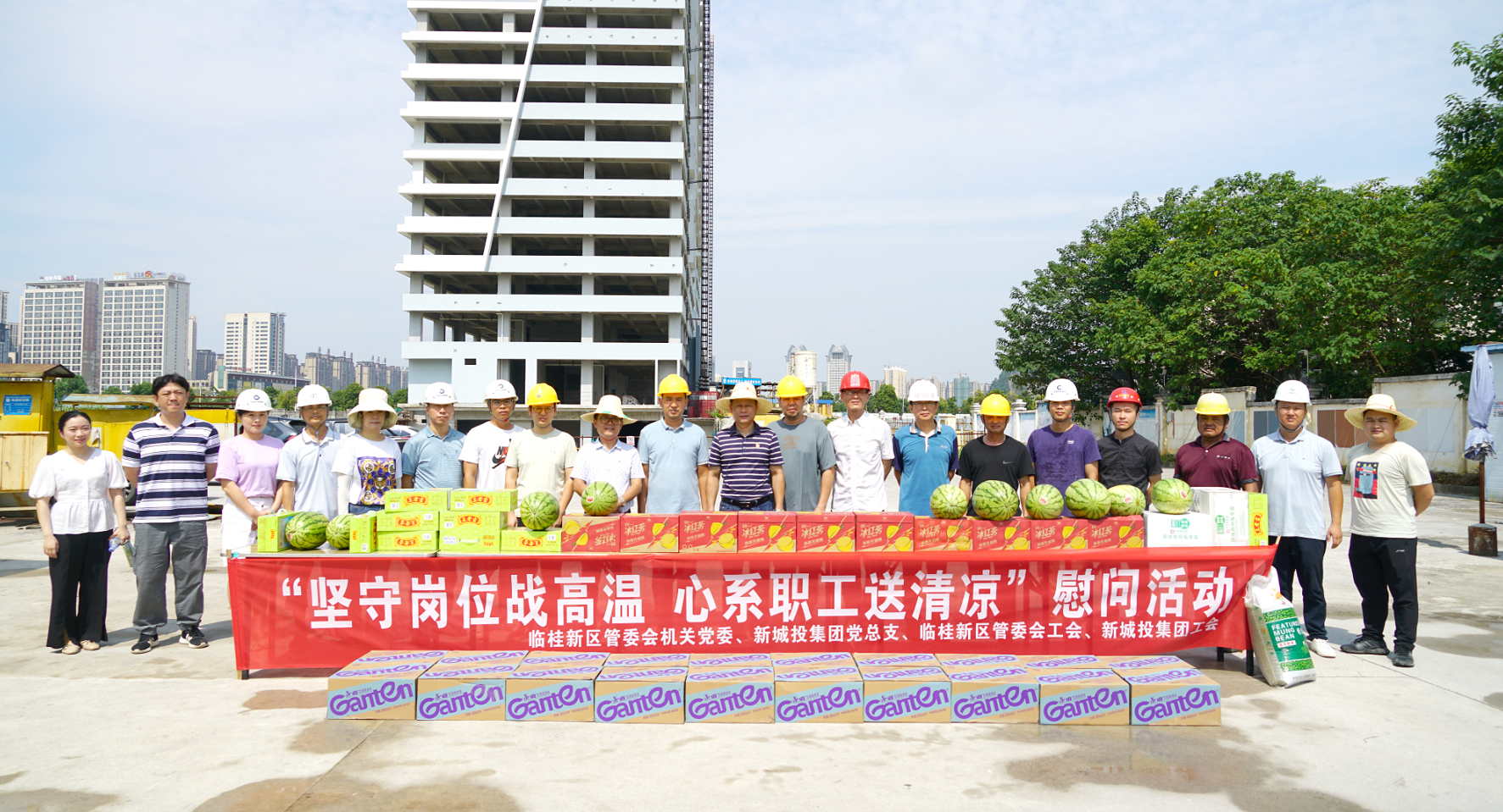 入伏以來,我市驕陽似火,高溫難耐。為切實做好桂林新區(qū)重點項目建設(shè)者的防暑降溫工作,保障建設(shè)者安全度伏,促進(jìn)重大項目安全生產(chǎn),2022年8月17日,一場由臨桂新區(qū)管委會機(jī)關(guān)黨委和新城投集團(tuán)黨總支主辦,新區(qū)管委會工會和新城投集團(tuán)工會承辦的“堅守崗位戰(zhàn)高溫,心系職工送清涼”慰問活動依次在北區(qū)湖塘水系連通工程項目、國際會展中心項目、興桂園項目建設(shè)一線開展。