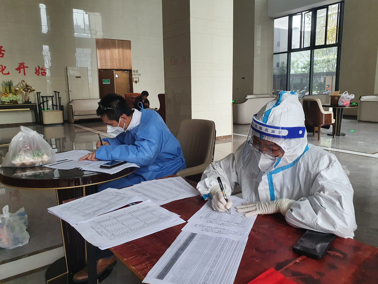 通知一出,由新城投集團包聯(lián)的5個小區(qū)的夜班志愿者、工作人員將近30人,都因所住小區(qū)提前封控無法到崗。集團領導研究決定,集團公司“疫情防控突擊隊”40名隊員,馬上帶好換洗衣服和充電寶趕到公司24小時待命,應對當晚夜班和次日6點早班人員無法到崗的突發(fā)情況。