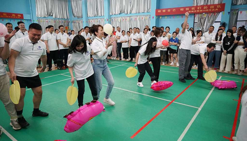 在目睹了兩場賽事的視覺盛宴后,職工們都躍躍欲試,迫不及待地參加集體團(tuán)建活動(dòng)?!皟扇巳憬恿s豬”游戲考驗(yàn)隊(duì)員們的協(xié)調(diào)性、敏捷性和團(tuán)隊(duì)合作意識(shí),集團(tuán)領(lǐng)導(dǎo)班子成員何萌與同伴一道齊心協(xié)力,順利完成比賽;“聽口令做動(dòng)作”游戲考驗(yàn)的是專注力、反應(yīng)力和身體協(xié)調(diào)性,集團(tuán)領(lǐng)導(dǎo)班子成員劉敏在這個(gè)環(huán)節(jié)展現(xiàn)了一定的實(shí)力;“瞎子摸魚”游戲側(cè)重考驗(yàn)職工的觀察力、反應(yīng)力和團(tuán)隊(duì)合作能力,對(duì)體能也有一定的要求,跑得慢的“魚”,將迎強(qiáng)壯“瞎子”的當(dāng)頭一棒,與生俱來的逃生欲讓游戲變得緊張刺激而又滑稽。輕松愉悅的活動(dòng)氛圍讓大家沉浸其中,現(xiàn)場充滿了歡聲笑語,洋溢著喜慶的氣氛。