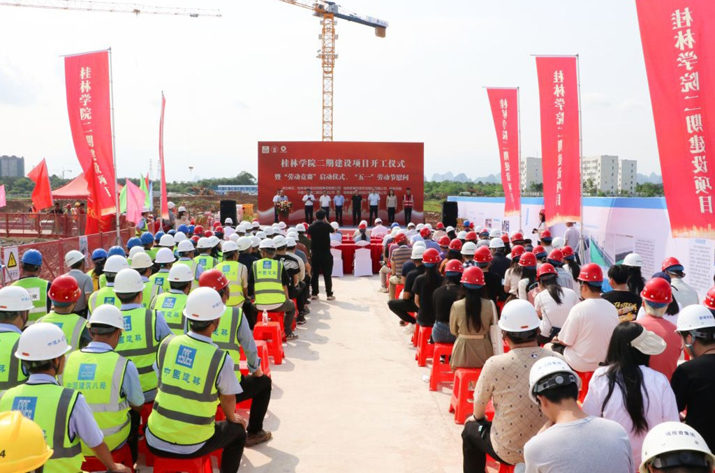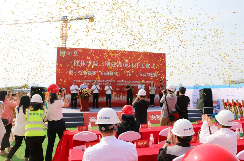 開工儀式上,城建集團(tuán)黨委副書記、桂林學(xué)院法定代表人諸葛長,新城投集團(tuán)黨委副書記(主持工作)、副董事長、總經(jīng)理朱毅,中建八局第二公司廣西公司黨總支副書記、執(zhí)行總經(jīng)理王紹舉,桂林學(xué)院黨委副書記、董事、校長楊樹喆相繼致辭或講話。城建集團(tuán)黨委副書記、副董事長、總裁肖笛波宣布“桂林學(xué)院二期建設(shè)項(xiàng)目”開工。