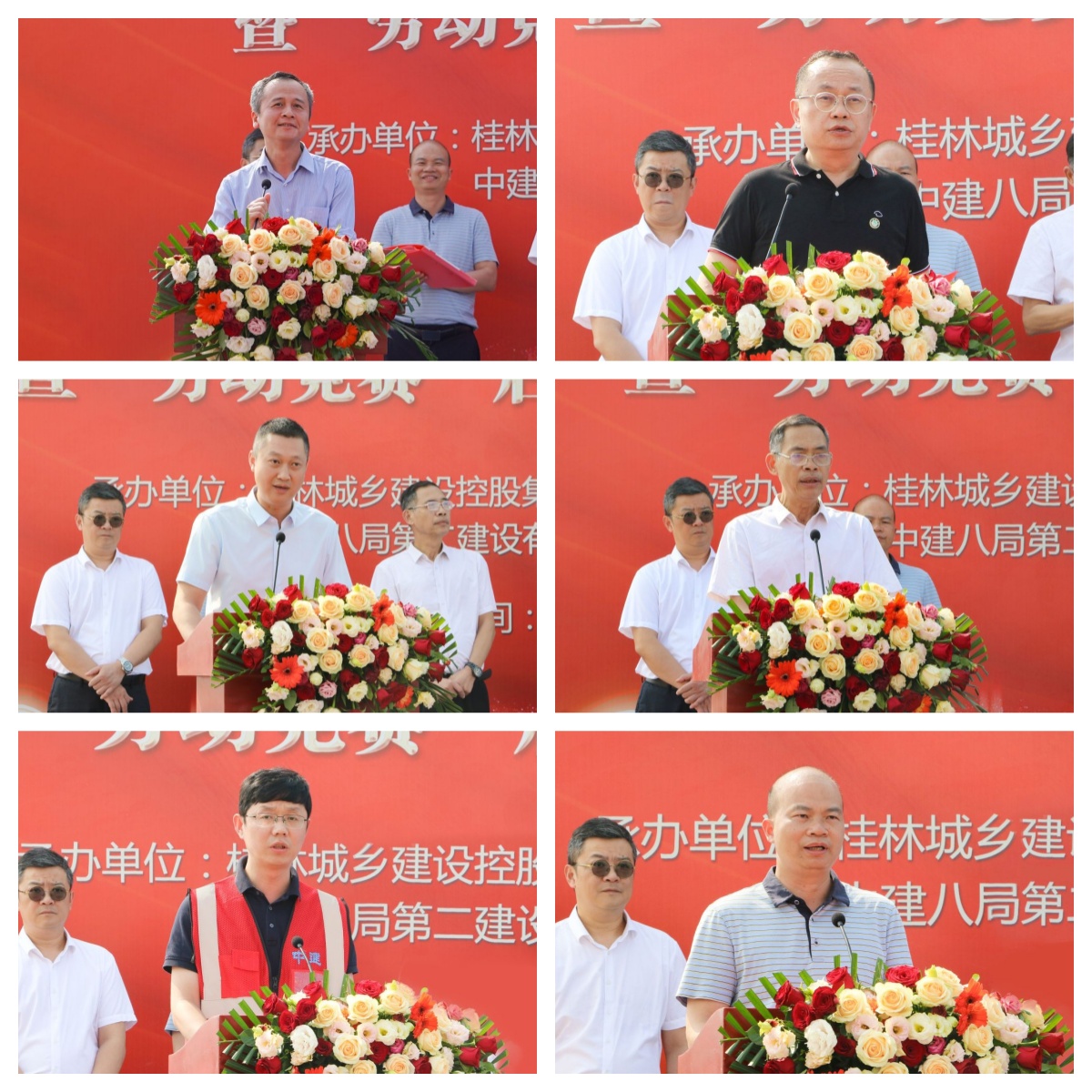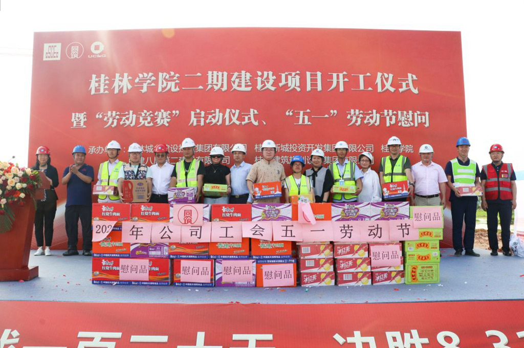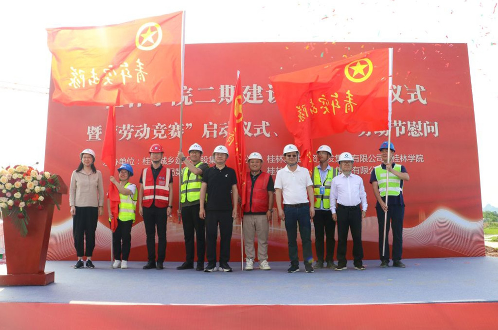 4月30日下午,桂林城鄉(xiāng)建設(shè)控股集團(tuán)有限公司下屬桂林學(xué)院二期建設(shè)項(xiàng)目開工儀式暨“勞動(dòng)競賽”啟動(dòng)儀式、“五一”勞動(dòng)節(jié)慰問活動(dòng)在桂林學(xué)院施工現(xiàn)場隆重舉行。城建集團(tuán)領(lǐng)導(dǎo)肖笛波、諸葛長、粟義春、黃江訓(xùn)、董潤秀、王巍、鄭善華,新城投集團(tuán)領(lǐng)導(dǎo)朱毅、譚力源、劉敏,桂林建筑規(guī)劃設(shè)計(jì)集團(tuán)有限公司黨委書記陸衛(wèi)堅(jiān),中建八局第二公司廣西公司領(lǐng)導(dǎo)王紹舉、徐海銀、柳云岳,桂林學(xué)院領(lǐng)導(dǎo)楊樹喆、唐文紅、劉文革、楊慶慶、何玲、蔣毅等共同出席儀式活動(dòng)。儀式活動(dòng)由桂林學(xué)院二期建設(shè)項(xiàng)目部總負(fù)責(zé)人、新城投集團(tuán)黨委委員、副總經(jīng)理葉青旺主持。