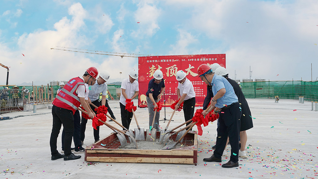 恰逢舉國同慶的第七十五個國慶節(jié)前夕,桂林學(xué)院二期建設(shè)項目傳來振奮人心的喜訊——4#、5#、6#學(xué)生宿舍樓主體工程順利封頂!這一階段性成果不僅是對祖國生日的一份獻禮,更是桂林新城投資開發(fā)集團有限公司(簡稱“新城投集團”)在城建集團領(lǐng)導(dǎo)下服務(wù)和拓展教育事業(yè)濃墨重彩的一筆。