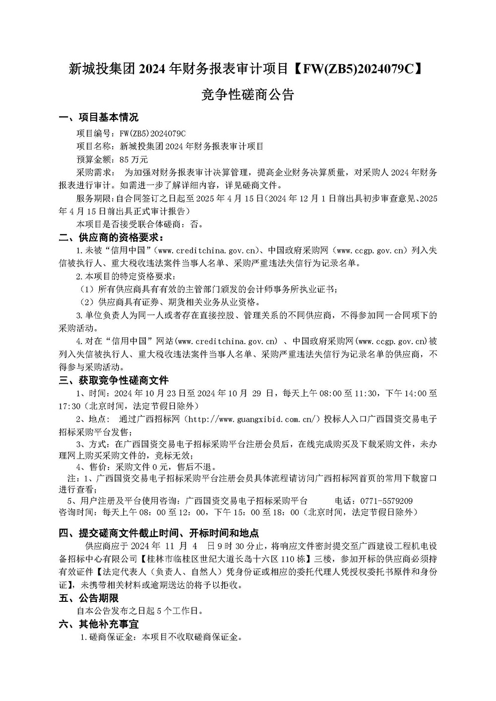 新城投集團 2024 年財務報表審計項目【FW(ZB5)2024079C】 競爭性磋商公告