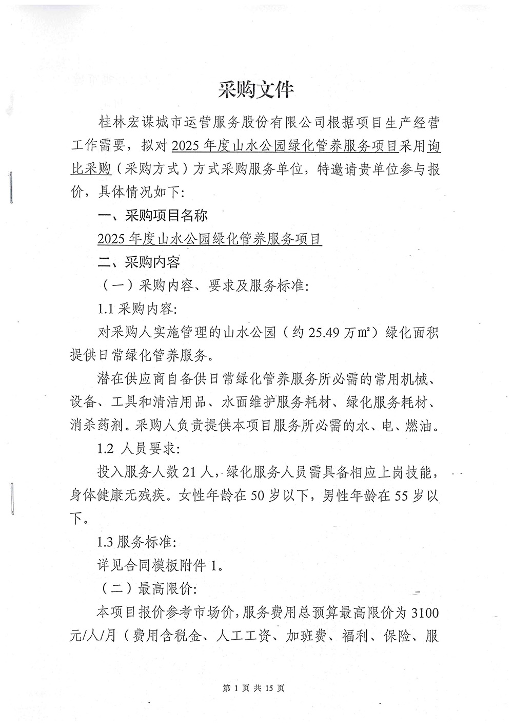 2025年度山水公園綠化管養(yǎng)服務項目采購文件