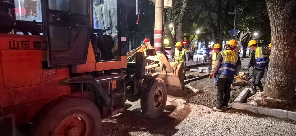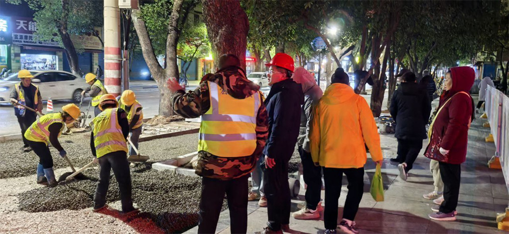為確保蘆笛小學教學活動正常進行,最大限度降低對周邊居民日常出行的影響,項目采取夜間和周末加班加點的工作方式,全體黨員干部職工發(fā)揚“五加二、白加黑”的奮斗精神,爭分奪秒推進工程進度,成功在兩天內(nèi)超額完成蘆笛小學門口130多米人行道1300多平方米的透水混凝土改造任務(wù),彰顯了項目團隊高效的施工能力和團結(jié)協(xié)作的精神風貌,充分展現(xiàn)了黨員的先鋒模范作用。
