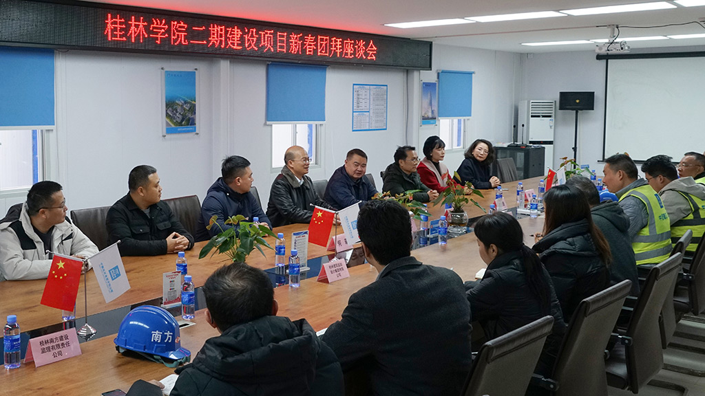 走訪結(jié)束后,在新城投集團(tuán)領(lǐng)導(dǎo)班子的陪同下,陶毅一行來到桂林學(xué)院二期建設(shè)項(xiàng)目,向全體參建人員致以新春的誠摯祝福,并與各方參建單位開展新春團(tuán)拜座談會(huì)。