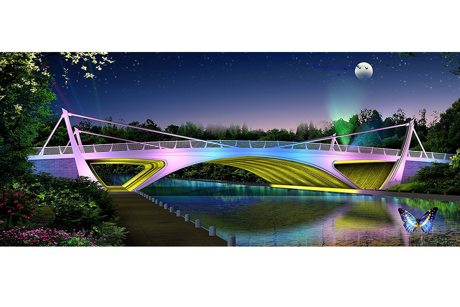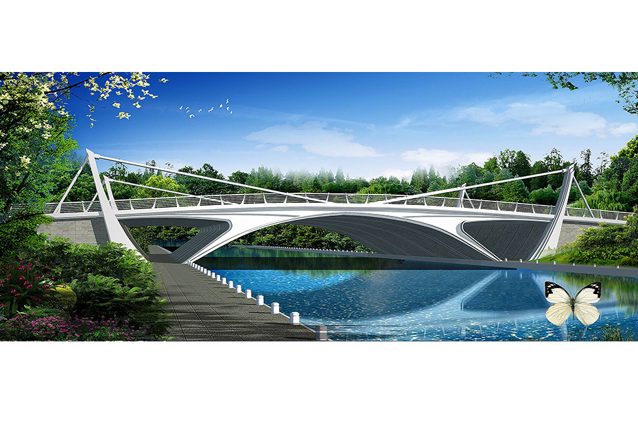 新龍橋由上海市政交通設(shè)計研究院有限公司設(shè)計,于2016年10月30日開工建設(shè)。橋梁為鋼筋混凝土斜腿鋼構(gòu),橋臺采用鋼筋混凝土結(jié)構(gòu),橋身橫跨核心區(qū)水系沙溏河,長56米,寬47米,橋下的景觀游船河道42米,是連接新、老城區(qū)的重要樞紐橋梁